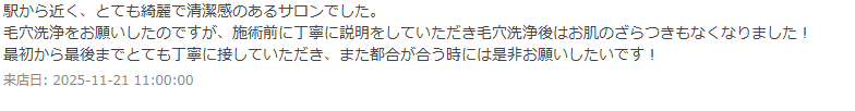 お客様より嬉しいお言葉を頂いました。